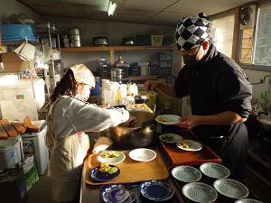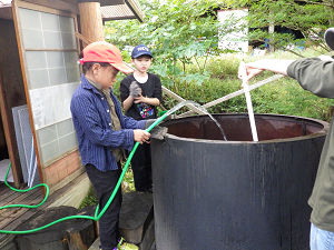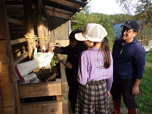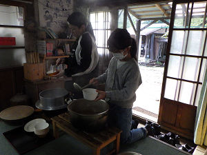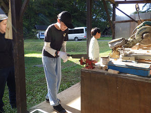 夏に比べると日が落ちるのも早くなり、だんだん肌寒さを感じるようになったら、体験活動・自然遊びの時間も終了です。夕方の当番活動に移り、それぞれの役割に取り組み始めます。お風呂当番やかまど当番は火付けがあり、当番が終わった子たちは室内で読書やゲームで遊んだり、外で薪割りをしていたりと、すきま時間も楽しい時間に変えて過ごしました。