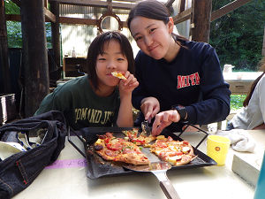 自家製の本格的な窯で焼き上げてもらったピザは、とっても良い香りでみんなから「早く!早く!」の声が上がっていきます。アツアツのピザを今か今かと待っていましたが、食べ始めると「美味しい!」の大合唱が始まり、あっという間に食べ終えてしまいました。