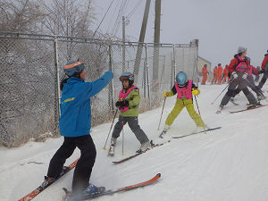 昼食を終えて、いよいよスキー準備です。3日間使うスキー道具のサイズを合わせ、スキーウェアに着替え、ヘルメットのサイズ調節をして準備万端!スキーのコースプに組み替え、お世話になるインストラクターの先生方に挨拶をしたら、いよいよコースごとにスキーへ出発です!