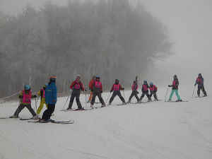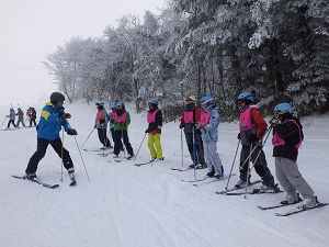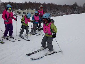 みんな今シーズンの初スキーだったので、まずが最初にきれいな真っ白の林間コースをゆっくり滑っていきました。ウォーミングアップができて、段々と体が思い出してきたので、体重やバランスのかけ方のレッスンを受けました。良いタイミングで重心をうまく変えると、ターンする時に、安定しながらターンができる技を教わり練習しました!強い風が吹き、寒い中でしたが、みんなやる気があり、とても頑張っていました!