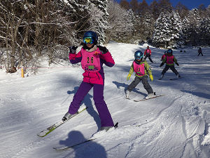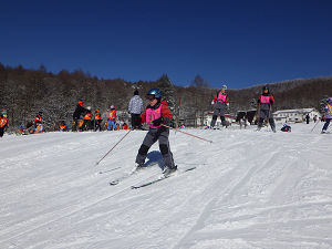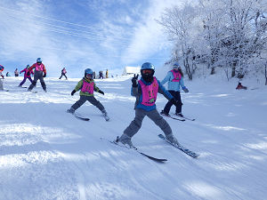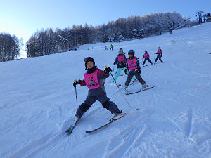 山頂からはみんなで一列になって滑ります。途中で転んでしまったり子も、午前・午後と一日滑っていたことで滑りが上達し、楽しくスキーをしている様子が見られました。一日が終わる頃には「次、行きたい!」という声が子どもたちからよく聞かれました。子どもたちにとっては、技術と自信、そして、スキーの楽しさが身についた一日になりました。