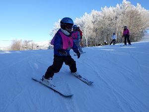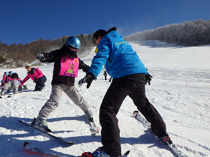 今日はまず初日の確認から行います。板の履き方やハの字での止まり方が出来ていることを確認してからリフトに乗りました。リフトの乗り方・降り方をインストラクターの先生に丁寧に教わり、最初はうまくリフトの乗降が出来なかった子も回数を重ねていくうちに上手に出来るようになりました。