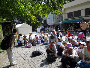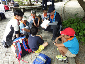 清滝駅前広場に到着し、下山時の発見を班で共有したり、1日の振り返りを行ないました。調査隊から認定証のプレゼントがあり、それを持って班のみんなで思い出の1枚を撮りました。流した汗と頑張った想いの分、達成感に満ち溢れた笑顔が見れてとても嬉しかったです。