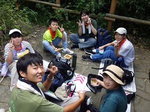 最後は、383段の長い階段を乗り越えて、全長3.3キロメートルの登山道をゴールした子どもたち。その達成感と東京を一望できるきれいな景色も相まって、頂上で食べるお弁当は格別だったこと間違いありません。今回の活動で初めて会ったという子どもたち同士が、登山を通して和気あいあいとお弁当を囲む様子も印象的でした。