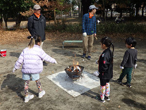中には、自分で考えてトングを使いながら薪の並びを整え、火がよく燃えるように工夫している子もいました。火の仕組みを理解しながら、試行錯誤する姿には頼もしさを感じました。火を眺めながらゆったりと暖まる時間は、この季節ならではの特別な体験となりました。
