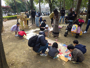 今回のプレーパークでは、それぞれのコーナーで子どもたちが自分なりの遊び方を見つけ、夢中になって楽しむ姿が見られました。また、木工コーナーでは保護者の方々が積極的に関わってくださり、親子で協力しながら作品のクオリティを高めていく様子が印象的でした。大人も子どもも一緒になって遊びを楽しむ、プレーパークらしい温かい雰囲気が広がっていました。