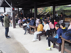 途中、パーキングエリアでの休憩をとりながら、予定通りの時間に「川場フィッシングプラザ」に到着することができました。子どもたちは、釣りを楽しみにしていた子も多く、はじまる前から元気いっぱいでした。まずは、施設の方から釣りのやり方やルールを教えてもらいました。各班で分かれていよいよ釣りがスタート!