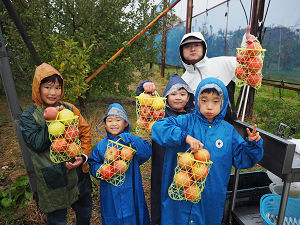 群馬県沼田市は、群馬県内一のリンゴ産地で、沼田のリンゴは、果汁は多く、肉質はややかため、酸味はやや少ないのが特長です。採れたてのリンゴの美味しさに「うますぎる!」と子ども達も大喜びです。農園には、様々な品種のリンゴがあり、それぞれで味も違うので、食べ比べもさせてもらいました。