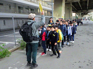 秋晴れが続いていましたが、この日は残念ながら1日を通じて雨天となりました。朝の集合場所には、抽選で選ばれた小学生の子どもたちがワクワクドキドキを胸に集まってくれました。保護者様にも簡単な挨拶を行い、バスに乗って出発です。